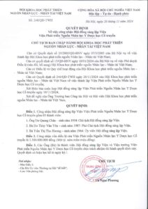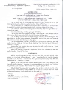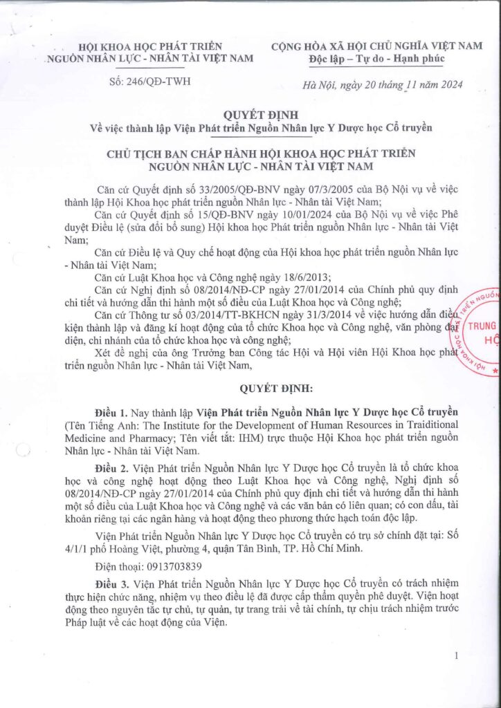1. Thực hiện các quyền ghi trong Nghị định 08/2014/NĐ-CP ngày 27 tháng 01 năm 2014 của Chính phủ Quy định chi tiết và hướng dẫn thi hành một số điều của Luật Khoa học và công nghệ, Thông tư 03/2014/TT-BKHCN ngày 31/3/2014 của Bộ Khoa học và Công nghệ, Điều lệ và các quy định của Hội Khoa học phát triển nguồn Nhân lực – Nhân tài Việt Nam và Điều lệ của Viện.