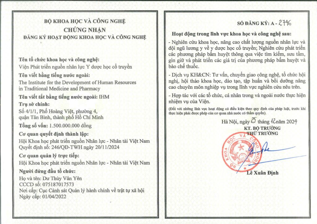 • Đào tạo và chuyển giao kiến thức: Viện có chức năng tổ chức các khóa đào tạo về bấm huyệt thập chỉ và y học cổ truyền cho các bác sĩ, lương y và học viên. Việc này giúp duy trì và truyền đạt kỹ năng cổ truyền một cách có hệ thống.