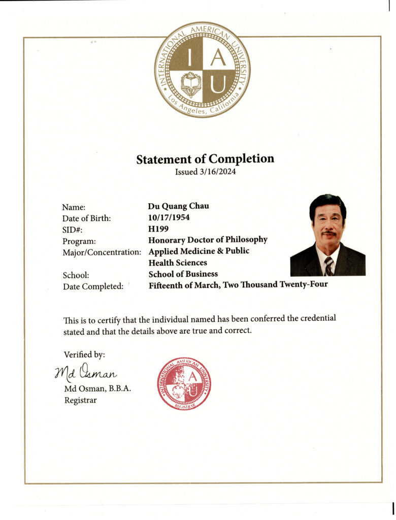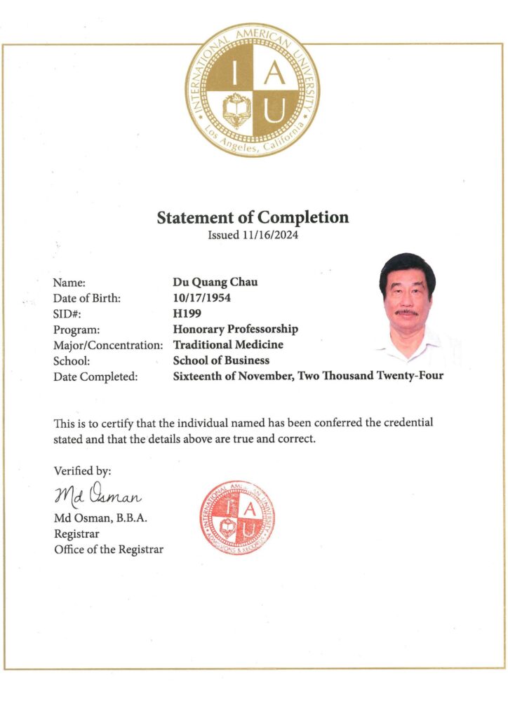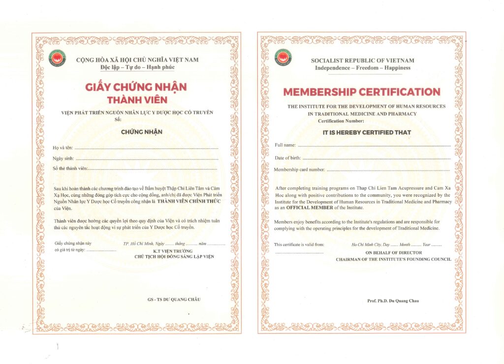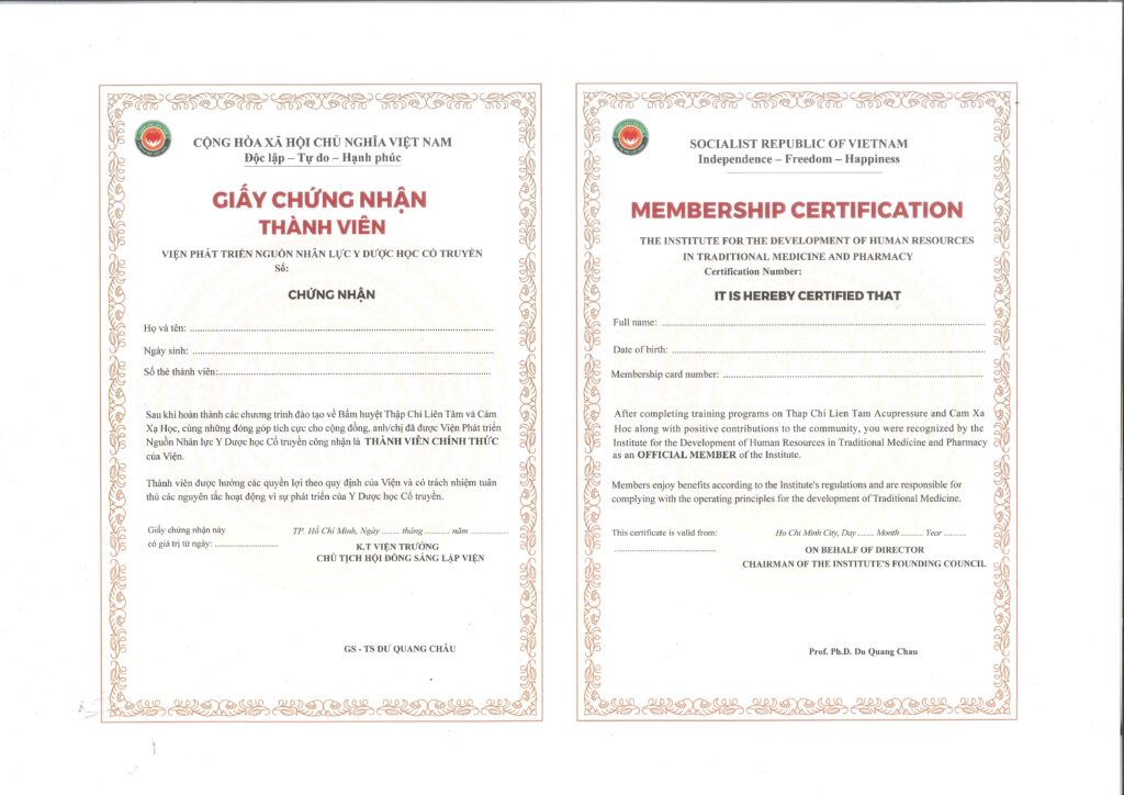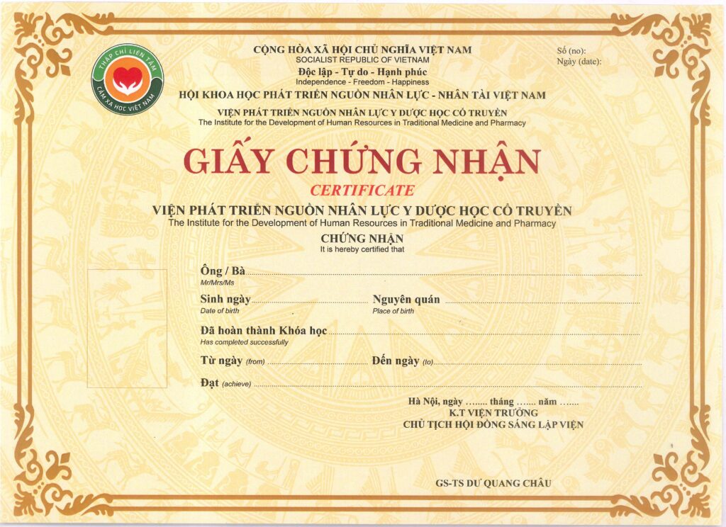 Certificate Y dược học cổ truyền